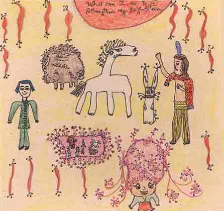 There was much activity in the meadow. Bison was there and the horse and the tall white rabbit. The Chinese man and the American Indian brave with one feather both appeared. I asked my question three times, "What can Annabella do to strengthen her self-esteem?"