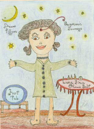 Luna Fina's lineage in four parts presents a composite history of several very important periods of time and events in Annabella's life. Luna Fina was with her from birth. She shone on Annabella at night. During the day while Luna Fina slept Annabella looked around for the Divine. She found it in flowers and leaves, in bushes and trees and in the grains of sand and salt that make up earth. Luna Fina never really went away. It was Annabella who drifted off. Her journey to refind her truth began with a very big giant step. Annabella went into the dark and stayed there for a while. Not unlike Alice she too went down deep into a rabbit hole. Slowly, slowly Annabella learned to trust. As Annabella grew big in Spirit she began to notice changes. She began to win at cards, no longer afraid of taking risks and trusting that her partners would help. She went to learn to swim and began to conquer her lifelong fear of water. She developed a line of floral and medicinal oils and salts and gave her products the name of Luna Fina. Today Annabella welcomes visitors who come seeking sacred herbal foot baths and anointments. Each visitor is given the option of receiving a response to her/his most serious question as Annabella does her shamanic work. Together again Luna Fina and Annabella go forward hand in hand always ready to greet the setting and the rising sun. |