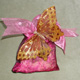 Rose Sachet - Hand-made using see-through silken cloth and French wired silk ribbon. They contain dried Cecile Brunner roses and essential oil of rose. They come in small size squares and large cone shapes. They are ornamented with either a rose, a fruit or a butterfly. $10 for a small. $18 for a large. Add $2 for a butterfly. Click here to see more pictures. | |