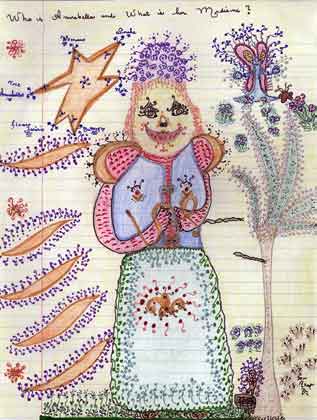 I asked the flower fairy the question three times, "Who is Annabella and what is her medicine?" The star came out of the sky again. She connected us all together, the bellowy woman, the snake, the tree, the mole, the butterfly, the flower fairy. Annabella was with the tree as they all became one, each holding a direction of the six pointed star.