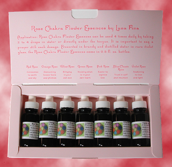 Flower essences are widely used traditional remedies respected for their abilities to promote physical, emotional and spiritual well-being. This set of rose essences is unique in that each essence is in vibrational resonance with a human chakra. Every essence is attuned to one of the seven chakras, each of which hold certain qualities representing aspects of the self. And the qualities of each chakra are linked to a different color. A rose is chosen to correspond with both the color and qualities of each chakra. This set of rose essences provides a unique opportunity to summon forth the full experiential bounty of the chakras.